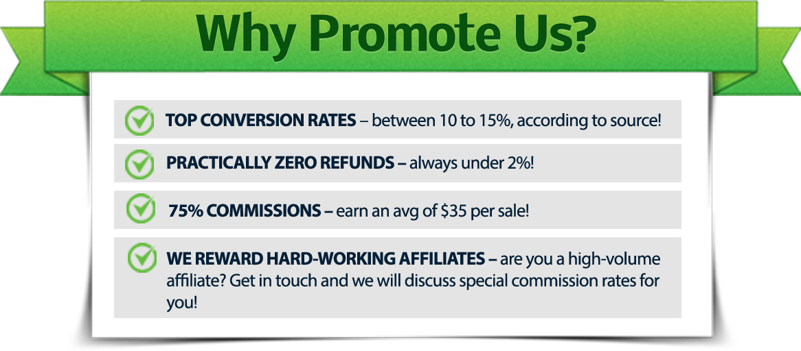 Apart from offering 75% commissions on all sales and personalized affiliate support, we are offering all new affiliates a $50 bonus, as a thank you for promoting our product! All you have to do to claim your $50 bonus is to send us your affiliate ID and paypal email once you have done 7 sales from the main product and we will paypal you the bonus within 24 hours. Yes, it’s that easy!
